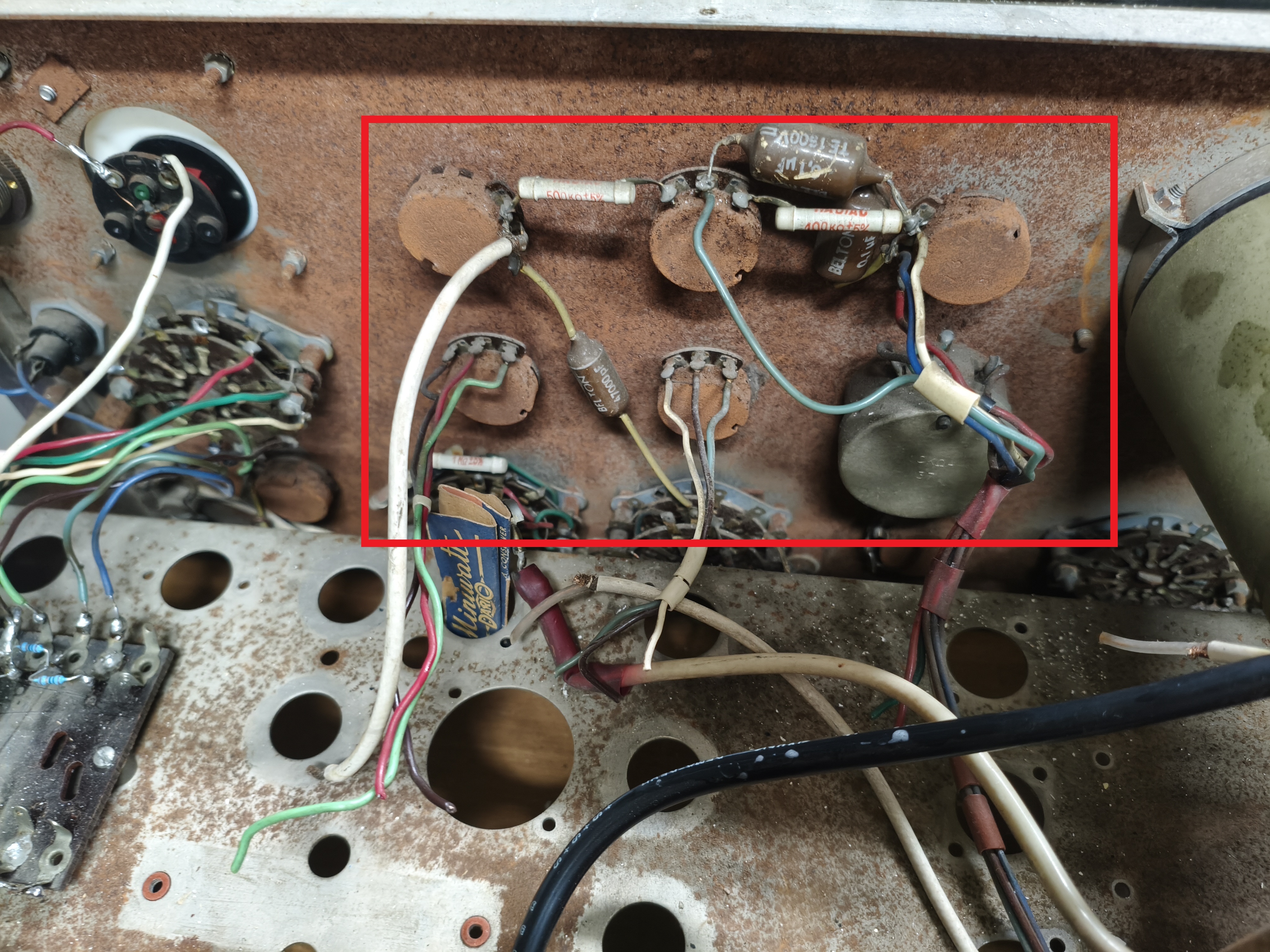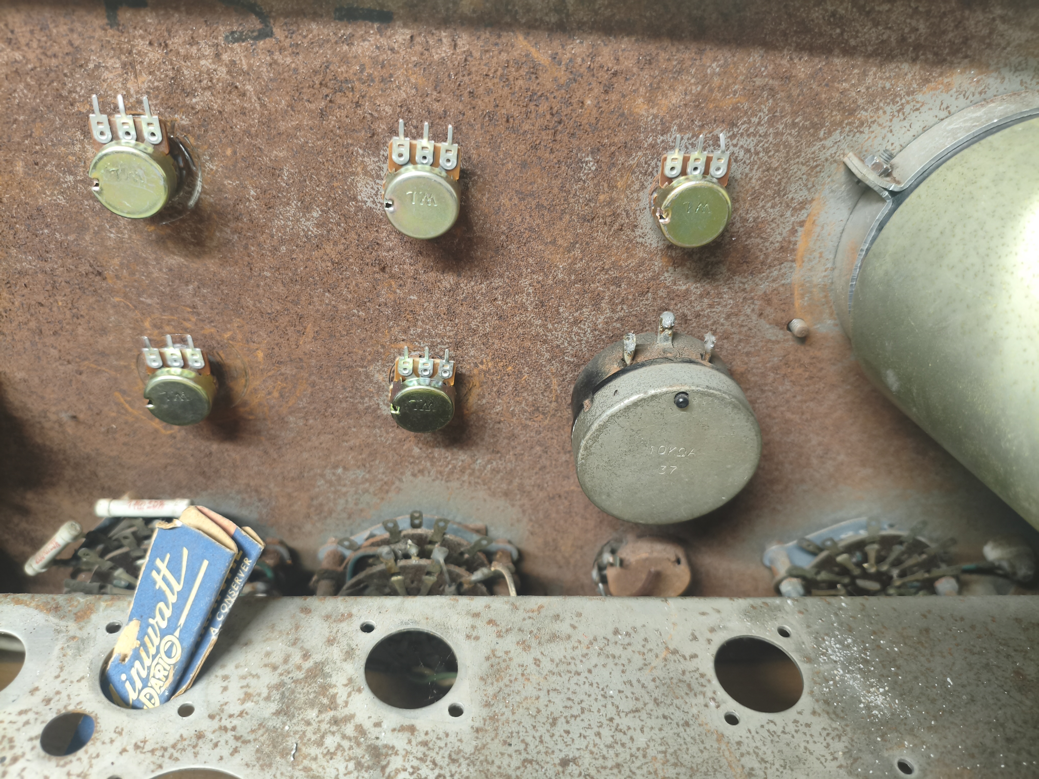 Les boutons d'origine sont récupérables, en bon état et s'adaptent parfaitement sur les nouveaux potentiomètres de 10 Kilo Ohm classique WL.