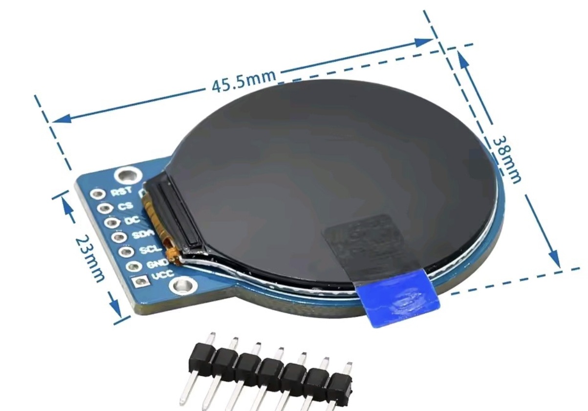 Nous allons l'émuler en la remplacant par cet écran OLED rond GC9A01 240x240 que nous allons grossir avec une loupe afin d'arriver au diamètre d'origine (environ 70mm).
