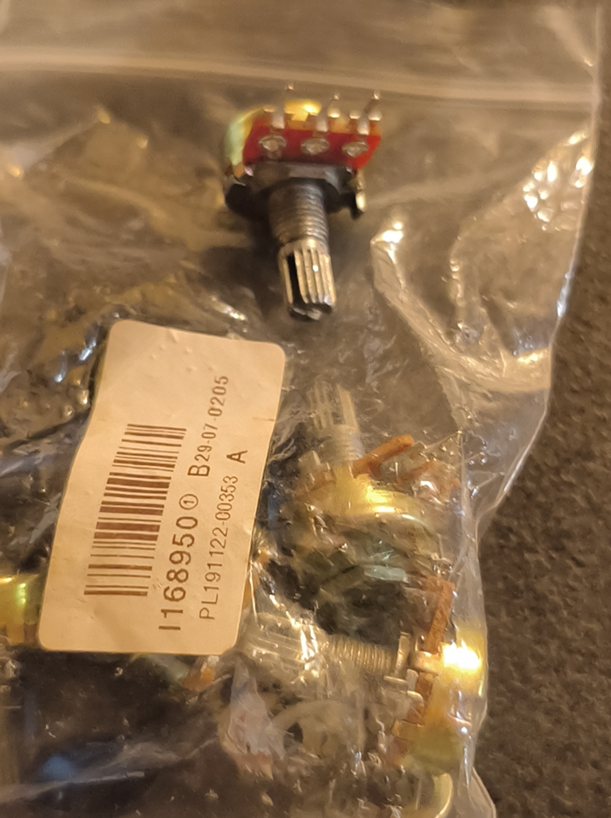 =>27/08/2025 Afin de gagner du temps, je vais m'occuper de remplacer les potentiomètres vétustes et non appropriés au projet. Ayant justement 5 potentiomètres neuf dans mon bric à brac. Les six boutons de l'oscilloscope devront être fonctionnels pour l'ESP afin de d'intéragir sur la courbe : ✅ Contrôle fin avec les 6 potentiomètres : ▷ Lumière = intensité verte de la courbe ▷ Concentration = effet de flou radial ▷ Synchro = intensité du cadrillage en fond ▷ Cadrage V = déplacement de la courbe verticalement ▷ Cadrage H = déplacement de la courbe horizontalement ▷ Vernier balayage = vitesse de phase ✅ Variation de la courbe suivant GAIN micro avec un 7ème potentiomètre : ▷ GAIN = gain du micro (directement branché sur le micro qui renvoi le signal calibré)