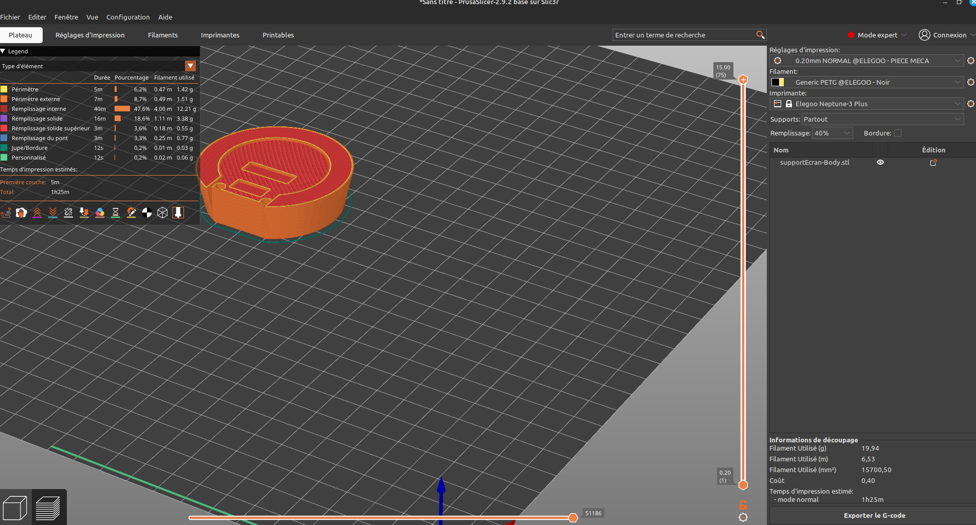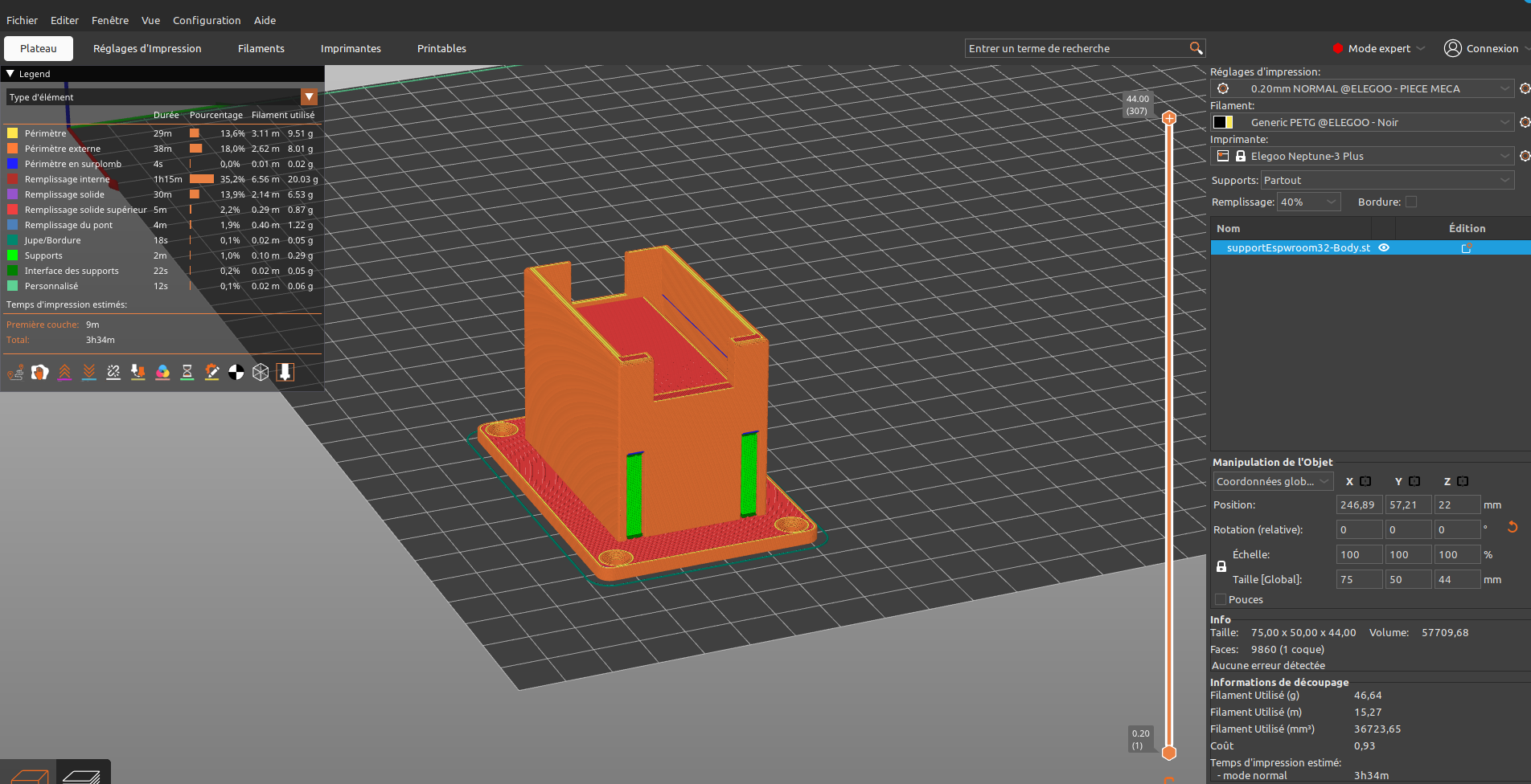 Bon, je me suis trompé dans les mesures de longueur 😂. Je recommence, rassurez-vous les images et le code sont à jour, pas d'erreur sur les fichiers mais c'est reparti pour 3h34 d'impression (sans parler de la modélisation à corriger) 😭